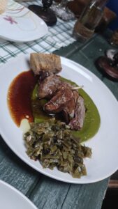 Chef Rob and Declan and Sabrina from Willow and Lore first came together in August 2025 to run a pop-up supper club as part of the annual Glenravel Country Fair. Chef Rob drew inspiration from a local legend Mickey McIllhatton, the ‘king of the glens’ a famous illicit Poitín maker whose 50th anniversary was being celebrated and from the regeneratively farmed rare breed Jacob sheep reared by Declan and Sabrina to create a masterpiece that had even the more conservative diners pushing their comfort zones and clearing their plates.